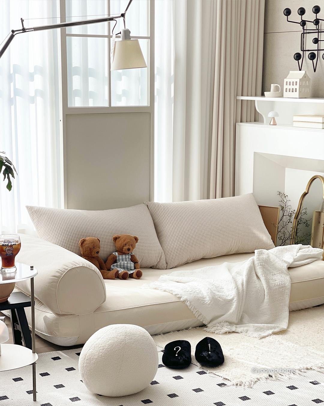 흑백 인테리어에 폭신한 좌식소파 조합,