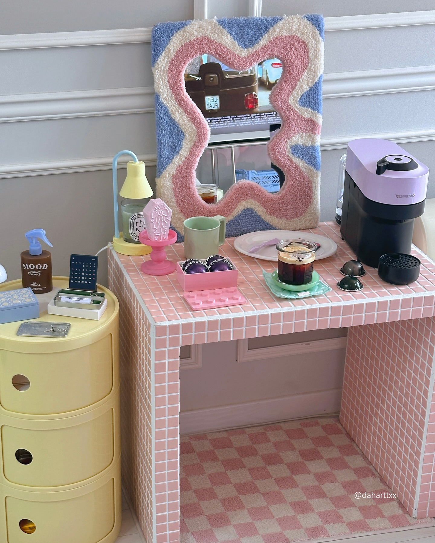 파스텔 톤으로 물든 공간에 귀여운 컬러 커피머신까지!달콤한 하루가 완성됐어요.
