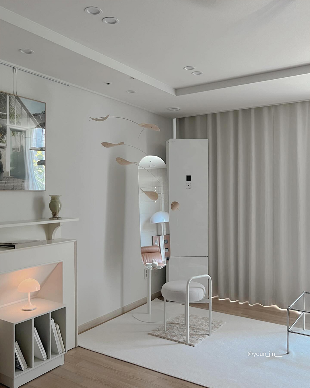 화이트톤 인테리어에 어울리는 군더더기 없는 거울,