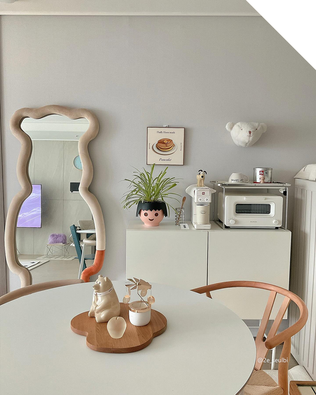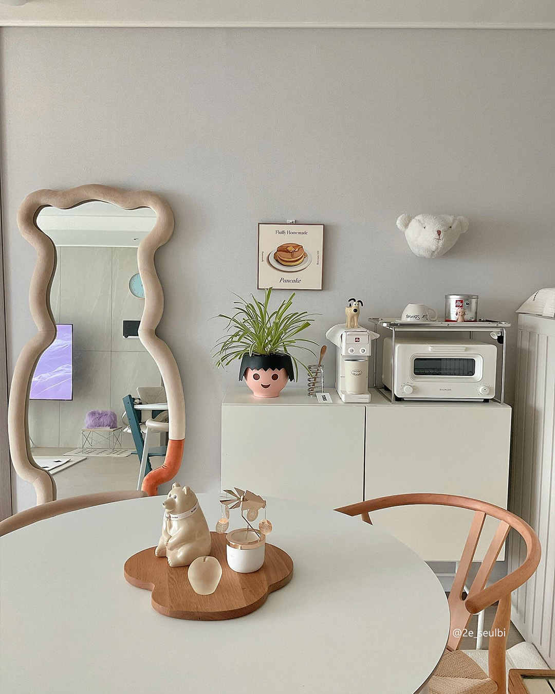 귀여운 곰돌이 프레임의 전신거울이 다이닝 공간에 놓였어요.공간에 위트를 더해주는 포인트 아이템!🧸