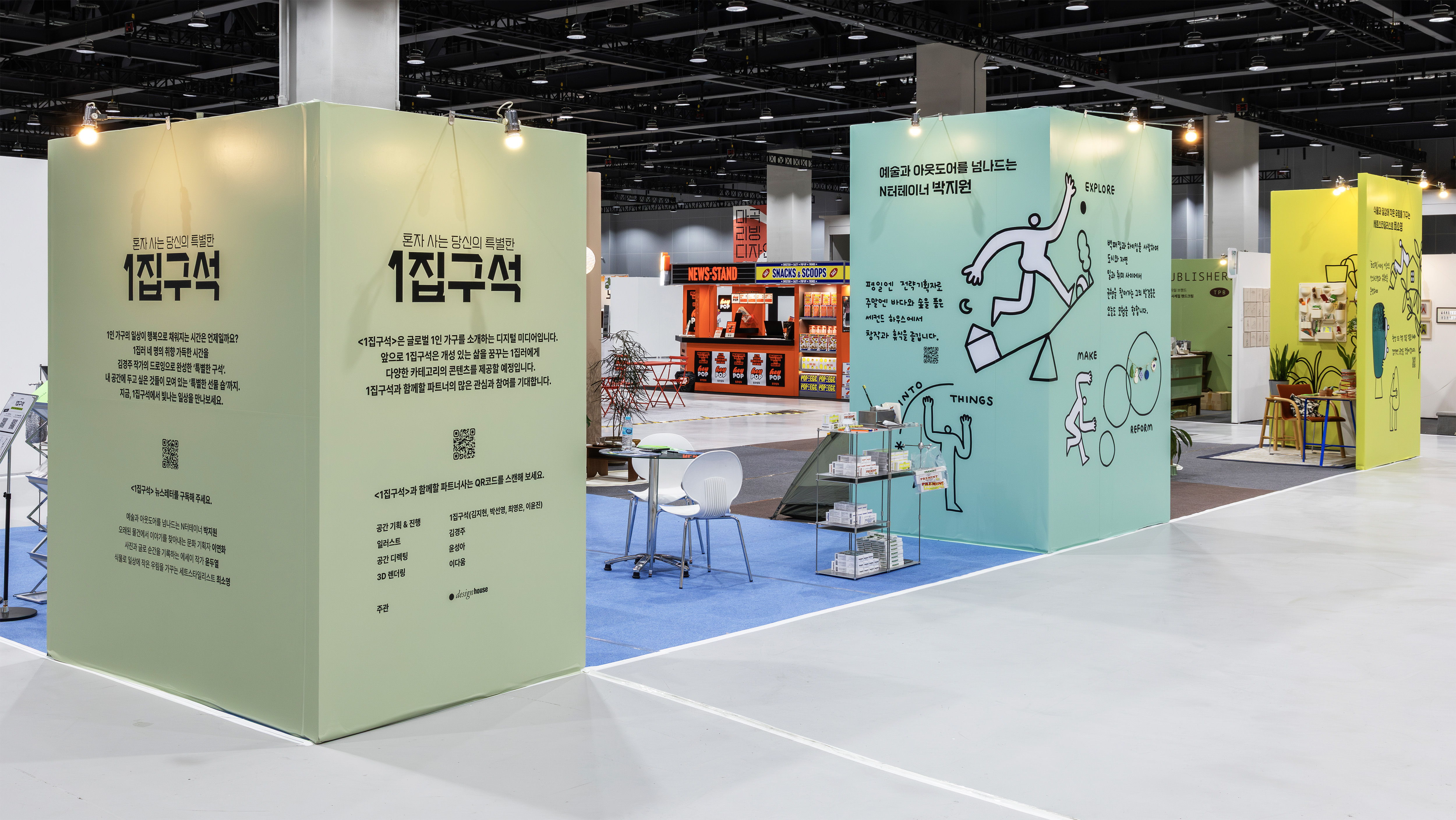 안녕하세요. 글과 영상, 공간을 넘나들며 사람과 브랜드의 이야기를 시각과 감성으로 풀어내는 콘텐츠 크리에이티브 디렉터 윤성아입니다. <1집구석>과 함께하는 리빙페어 기획전은 2024년 코엑스에서 열렸던 <서울리빙디자인페어>를 시작으로 세 번째 함께하고 있어요. 매번 달라지는 1집러들의 세계를 시각 언어로 번역해 각자의 삶이 하나의 장면처럼 이어지도록 디렉팅 하는데 초점을 맞추고 있습니다.